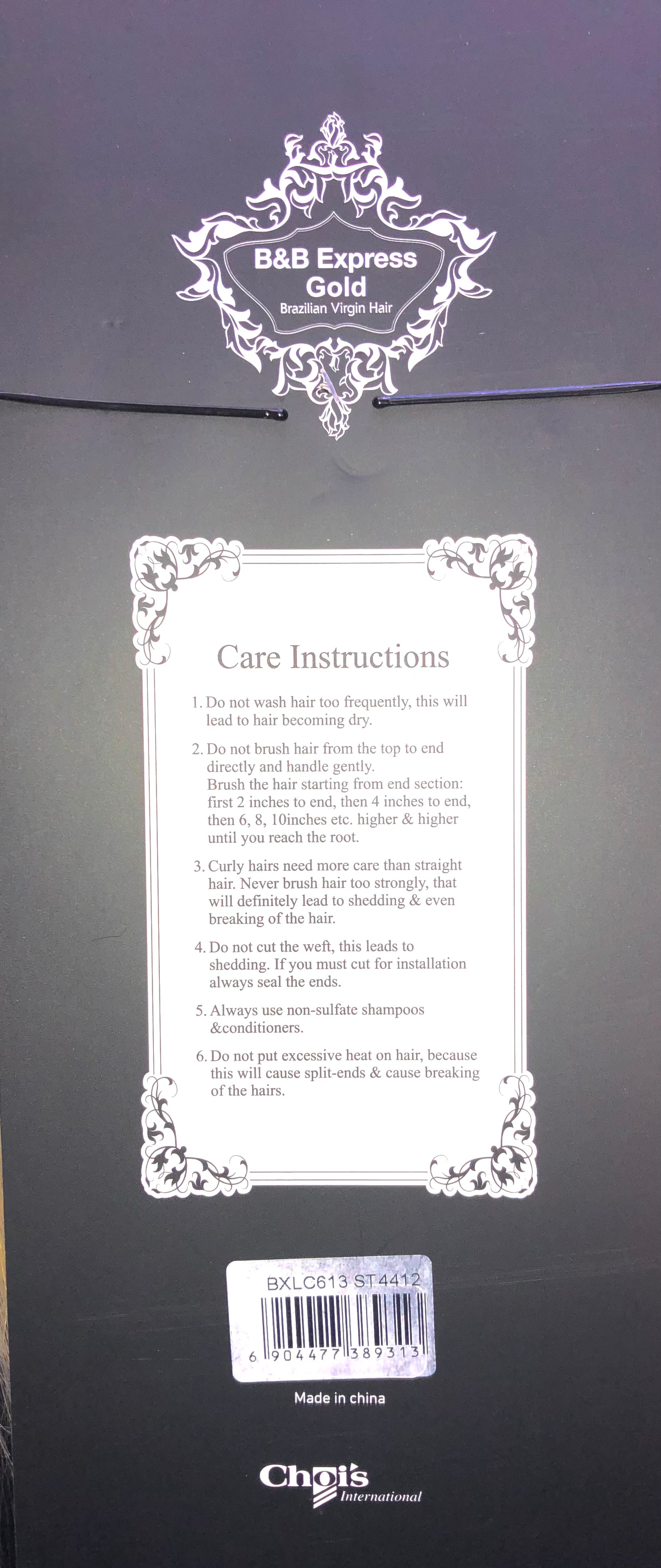 B&B EXPRESS GOLD 100% BRAZILIAN STRAIGHT VIRGIN HUMAN HAIR COLOR 613, 12" (4x4)